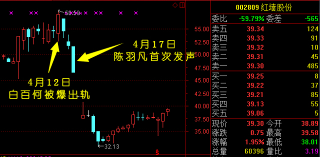 然而,真相大白并非意味着事情结束了。在憋了两个休息日之后,4月17日,红墙股份遭遇大单砸盘,跌停收盘;4月18日,红墙股份一字跌停;4月19日,红墙股份继续大跌8.59%。