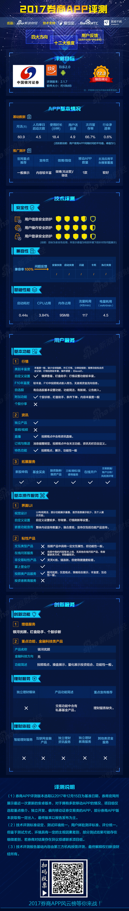 为了更好地为广大投资者展示各家券商APP的优势劣势,帮助用户精准辨别投资所属,新浪财经将针对60余家券商主流APP进行按需测评。测评小组将从四大方向(基础数据、技术性能、创新功能、用户服务)、十二大维度(基本数据、推广测评、安全性、兼容性、性能测试、行情资讯功能、增值服务、创新服务、金融科技类功能、理财服务、互联网金融化、用户粘性)进行测评。