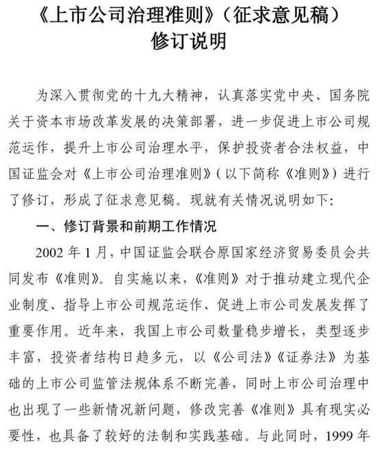 证监会就修订《上市公司治理准则》公开征求意见,更有中国特色了!