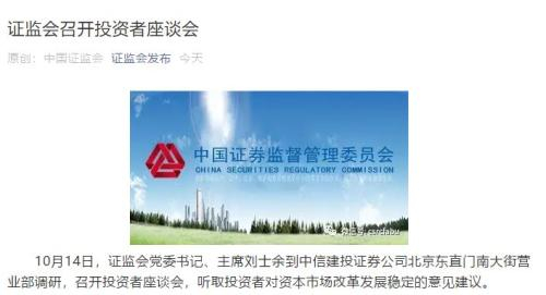 10月14日晚间,证监会发文,召开投资者座谈会。