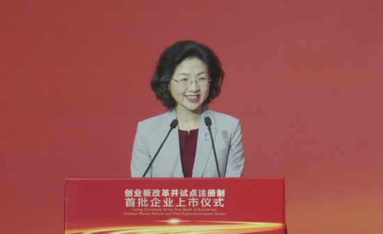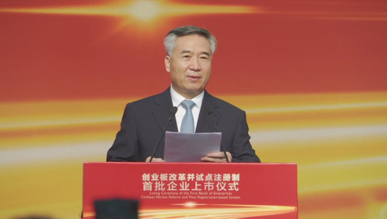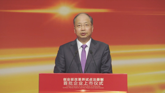国务院副总理刘鹤在上市仪式书面致辞称,创业板改革并试点注册制是资本市场建设承上启下的重要环节。它吸收科创板注册制改革的良好实践,为下一步中小板和主板注册制改革奠定基础。注册制改革和交易、常态化退市、投资者保护等各项制度建设正在有序推进,资本市场也从增量改革深化到存量改革,整个市场正在发生深刻的结构性变化。要逐步把上市公司的优胜劣汰交给市场,稳步增加长期业绩导向的机构投资者,回归价值投资的重要理念,推动信息充分披露,全面净化市场生态,建设诚信守法资本市场。