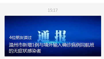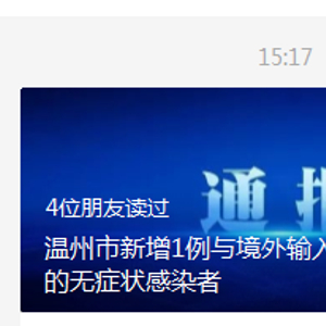 11日下午3时许,温州发布披露新增一例无症状感染者的最新情况。
