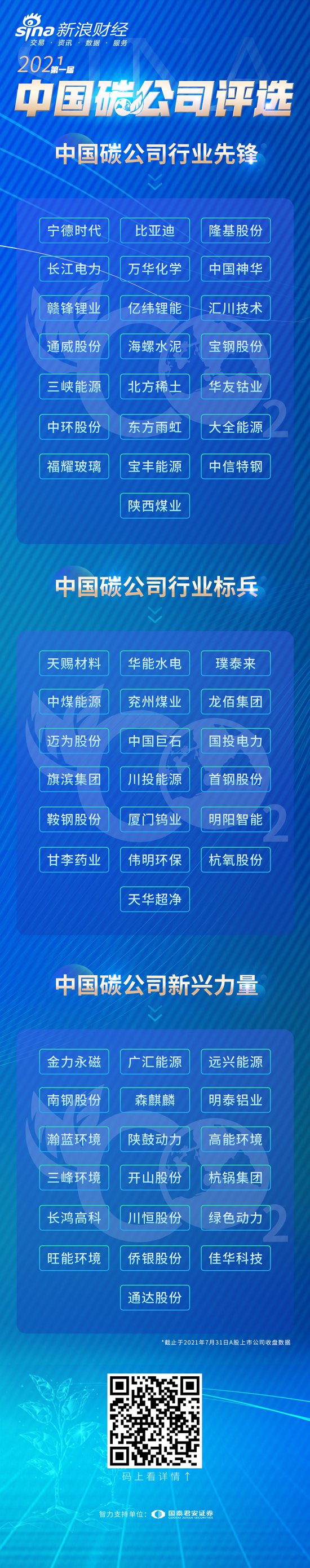 新浪财经联合国泰君安研究所,精选电气设备、钢铁、煤炭、有色、建筑材料、新能源、机械、化工、公用事业、环保等十个碳中和强相关行业,经过网络投票和专家投票,筛选出60家上市公司。