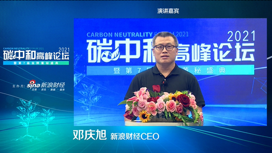 新浪财经CEO邓庆旭作为主办方致辞。他表示,今年新浪财经已经上线碳频道,聚焦报道碳领域发生的热点事件,解读碳中和时代投资机会。同时,新浪财经举办第一届中国碳公司评选,聚焦10个碳中和强相关赛道,汇总网络声量和专家委员会意见,筛选出60家A股中国碳公司代表,它们,或是引领中国资本市场“碳中和”前行的向上力量。