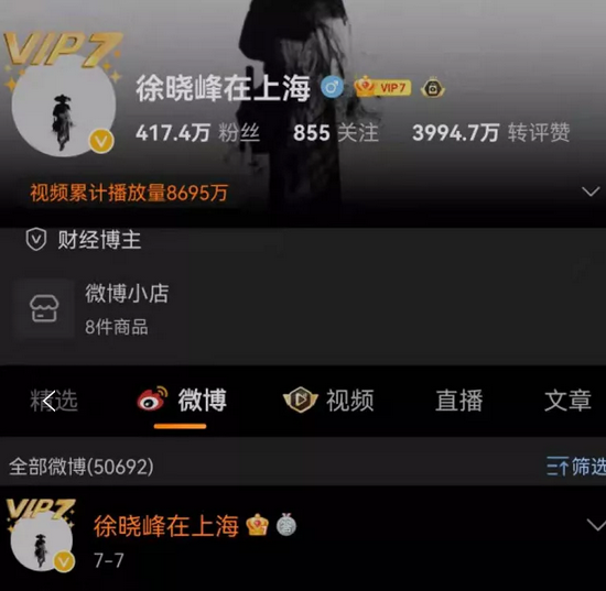 此外,坐拥超400万粉丝的微博大V徐晓峰,在7月7日以后,其微博就已不再更新。
