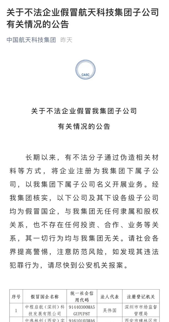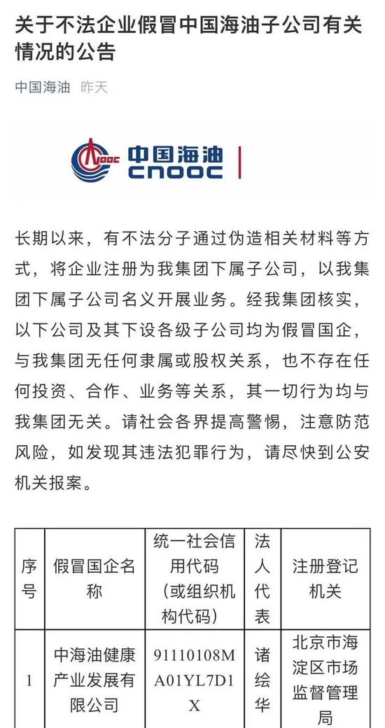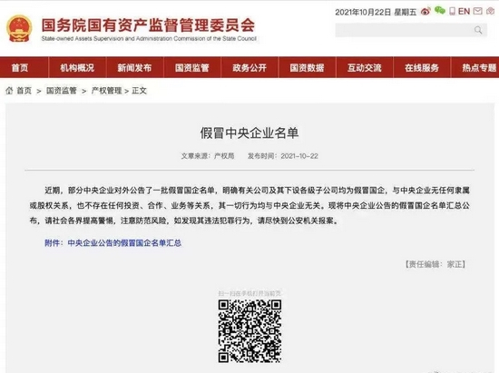 中央企业公告的假冒国企名单汇总