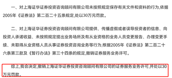 上海证华不仅被撤销了相关牌照,还被处以30万罚款。