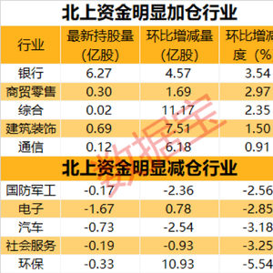 银行板块获北上资金逆势加仓,一周持股量环比增长4.16%,结束了连续五周的持股量下降。