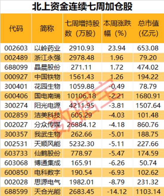 北上资金连续七周加仓股仅16只