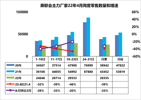乘联会:4月第三周总体狭义乘用车市场零售日均3万辆 同比下降46%