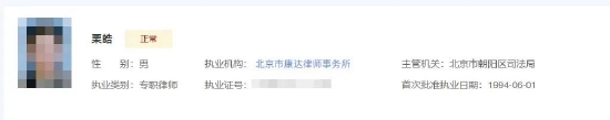 据全国律师执业诚信平台,栗皓还在康达名下