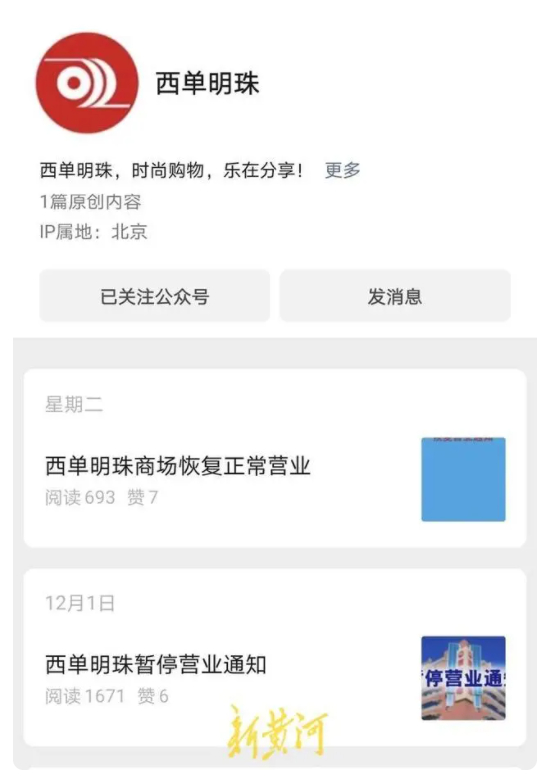 北京西单明珠商场恢复营业不足一周因顾客稀少再次停业?商场物业:通知已取消