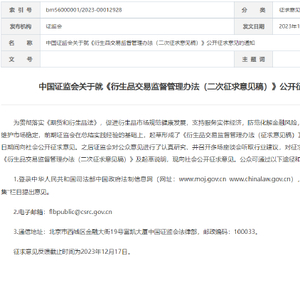 原标题:证监会就《衍生品交易监督管理办法(二次征求意见稿)》公开征求意见