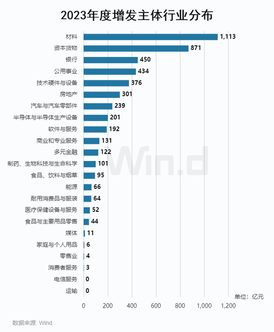 从增发行业分布来看,材料和资本货物行业募资金额处于绝对领先地位,分别高达1,113亿元和871亿元。