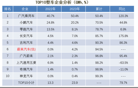 中创新航TOP10乘用车客户