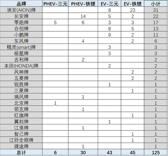 附:近两年来中创新航配套的汽车品牌车型数量