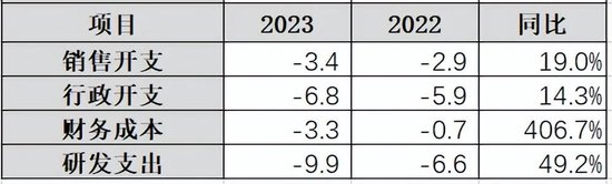 研发继续保持高位,2023年投入9.9亿元,同比增长49.2%,财务成本增长较快,达到3.3亿元。