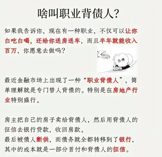 在社交媒体上,“职业背债人”被包装成了“半年收入百万”的新职业——甚至有些机构还承诺“只要3-6个月时间,就可以拿到数百万的报酬”。