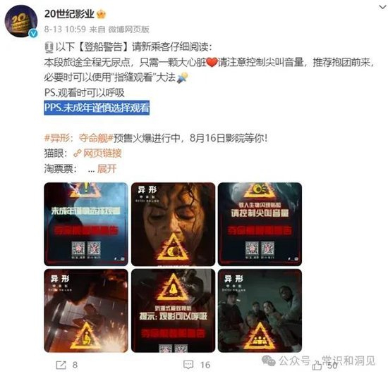 二、提醒影院,放置明显的提示,提醒家长,可能会吓到小朋友,未成年人谨慎观看。虽然出品方的海报、微博都这么说过了,但电影院还是要给出明显的提示。这也可以避免自己的责任,避免后来家长闹退票、赔偿。