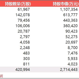据了解,随着梧桐树公司爆光的还有其两家全资子公司——北京凤山投资有限责任公司和北京坤藤投资有限责任公司,这两家投资公司亦于去年四季度同步展开A股投资。数据显示,目前三家公司共计持有11家A股上市公司,总持仓42亿股。假设数据披露期至今未减持的话,这42亿股按昨天收盘价计算,已达271亿元之多,具体持仓明细如下: