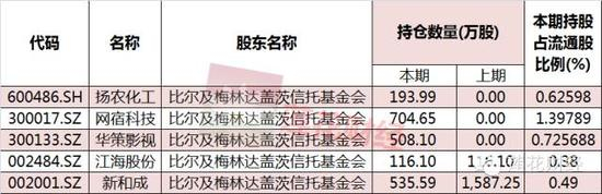 证券时报•莲花财经(ID:lianhuacaijing)小编根据数据统计发现,在已公布2016年一季报的上市公司中,华策影视、扬农化工的前十大流通股东名单中也出现了比尔盖茨基金的身影,均为一季度新进买入,分别持有508.1万股、193.99万股。有图为证:
