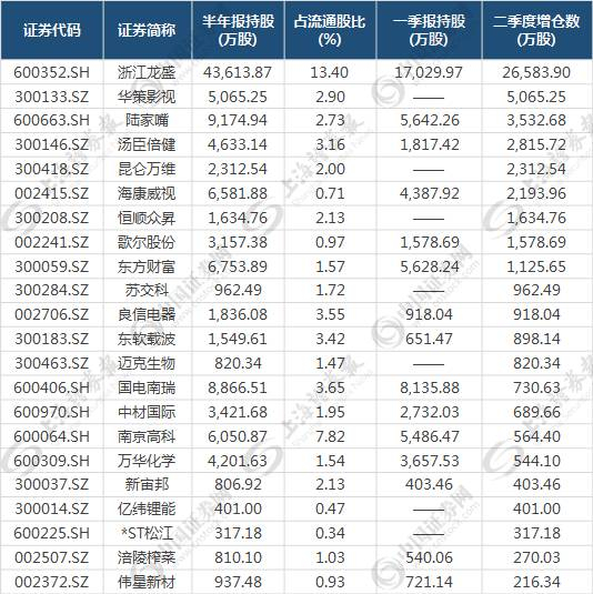 机构研究也显示这些“国家队”二季度增仓股后市空间有望进一步拓展。比如,浙江龙盛(600352)发布半年报,上半年实现营业总收入同比增长19.50%,归属上市公司股东净利润同比增长4.83%,每股收益为0.3114元。群益证券认为,染料及中间体量价齐升带动公司半年报业绩稳定增长,而多元化发展为未来业绩增长添动力,预计公司2017年、2018年每股收益为0.75元、0.83元。予“买入”投资评级,目标价15元。