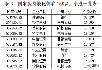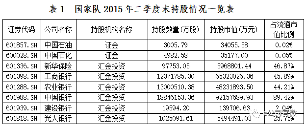 国家队救市以来持仓分析:10只个股持股比例超15%