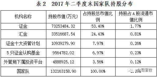 通过对国家队2017年二季度末持股情况的梳理,得到以下结论: