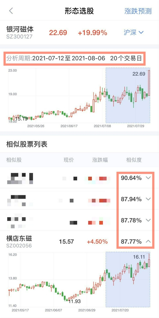 而第一名神秘个股相似度更是超过了90%!那么,也就意味着,这只神秘个股更有可能复制银河磁体近期的反弹势头!