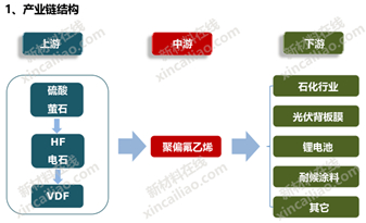 PVDF全称聚偏氟乙烯,是全球仅次于PTFE(聚四氟乙烯)的第二大氟塑料。下游主要应用于光伏背板、氟碳涂料、锂电池粘结剂及隔膜等领域。粘结剂是锂电池关键辅材,对电极以及电池容量、循环寿命等性能有重要影响。PVDF有较高的电化学稳定性、热稳定性和良好的电解液亲和性等优势,一般搭配NMP(N-甲基吡咯烷酮)溶剂使用,在三元材料以及正极应用占比极高。另外,PVDF具有较强的极性和高介电常数,用作锂电隔膜可大幅提升隔膜的亲液性,并有助于锂盐的离子化;也可用作隔膜涂层,能大幅度提高电池的耐高温性能和安全性。