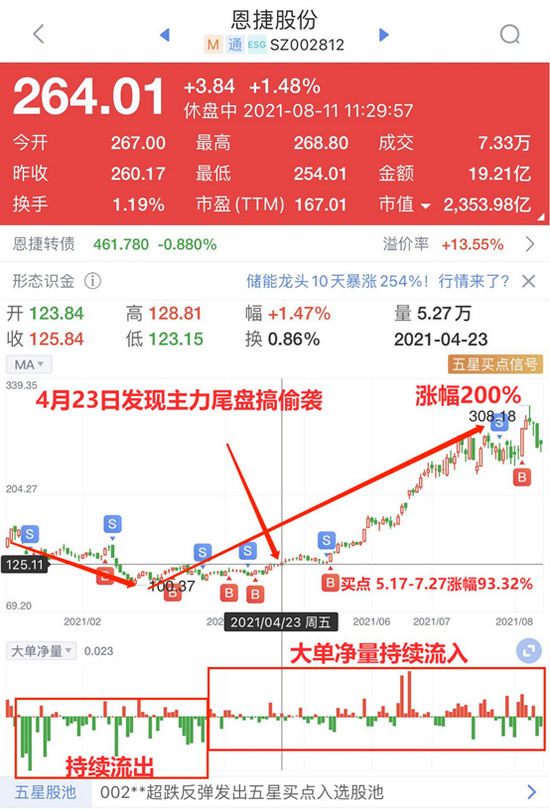 5月17日和7月27日,B/S点也发出了提示信号,恩捷股份从126.73元涨至245元,区间涨幅为93.32%。