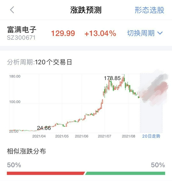 而第一名神秘个股相似度更是达到了95.25%!那么,也就意味着,这只神秘个股更有可能复制富满电子的反弹走势!