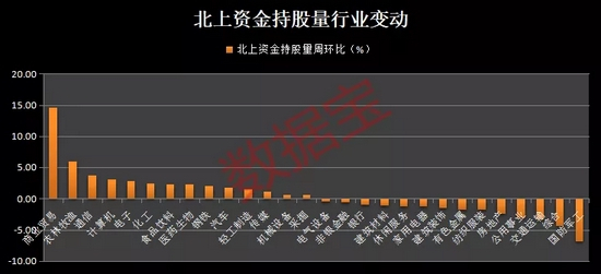 统计显示,上周北上资金持股量环比增加和减少的行业各半。商业贸易行业获北上资金青睐,环比增幅最大,北上资金最新持有该行业10.85亿股,相比前一周末增长14.49%,持股比例为近8月之最;环比增幅居前的还有农林牧渔、通信、计算机等行业。