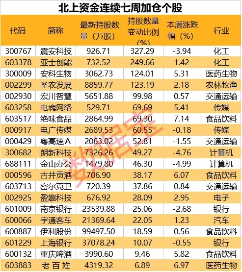 最新!外资重点加仓股来了,连续七周买入20股(名单)