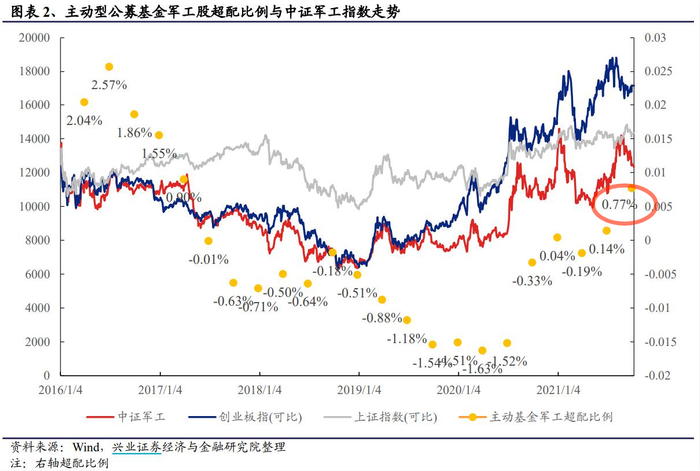 2、公募基金超配军工