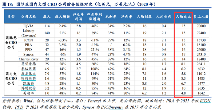 相比国外的CRO企业,中国CRO行业的特点就是增速快、人均成本低、盈利能力强。信达证券指出,中国CRO行业尚在高速发展阶段,集中度低于全球,通过对全球及中国代表性CRO公司2020年各项指标进行对比,可发现:1)国内公司收入增速远超国际,行业处于高速增长期。2020年两家国外公司出现收入负增长,国际平均收入增速为7.0%,国内公司平均收入增速为36.7%;2)国内公司净利润增速高,盈利能力强劲。国内公司净利率平均值为27.4%,远超国际龙头公司的7.5%;3)人均成本低,工程师红利持续驱动行业高增长。国际龙头公司2020年人均成本平均值为15.4万美元/人,国内公司为7.1万美元/人,显著低于国际龙头公司。