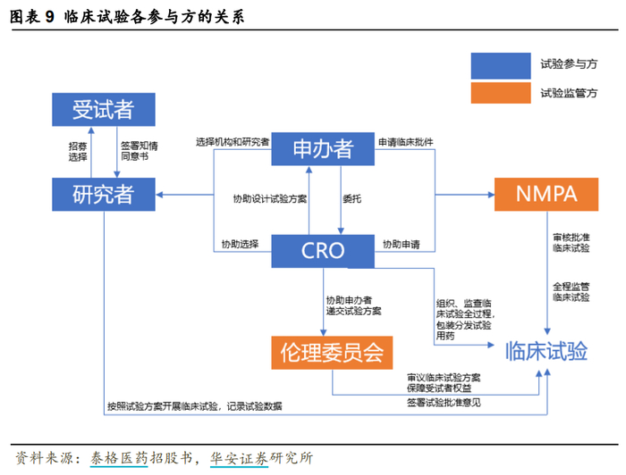 临床CRO机构在医药研发产业链中处于关键地位。上游对接临床研究服务所需的专业人员和具备药物临床试验资格的医疗机构,中间对接药品监管机构,下游对接制药企业和其他新药研究机构。