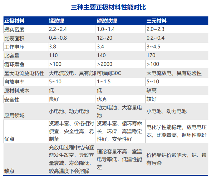 锂离子正极材料作为制约锂离子电池发展的瓶颈,正极材料的好坏,直接决定了锂离子电池产品最终性能指标。与三元材料相比,磷酸铁锂正极材料在大电流放电(5~10C倍率放电)时放电电压平稳,热稳定性好、循环寿命长、安全性好,广泛适用于储能等大容量电池领域。