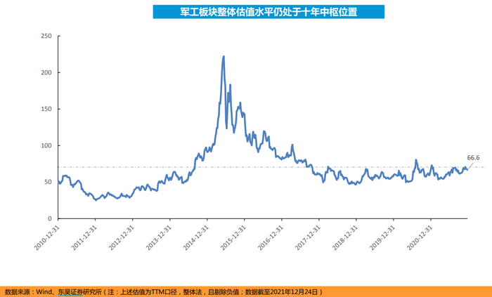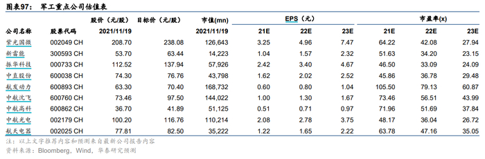 2)军工行业上市公司基本面持续改善,整体估值水平基本合理。十四五期间,太平洋证券估计板块业绩将维持20%以上的年复合增速,增长将继续起到消化估值的作用。年末估值切换,2022年动态PE更低。目前处于年末估值切换重要时期,切换到2022年军工板块对应市盈率下降显著,目前估值极具吸引力。