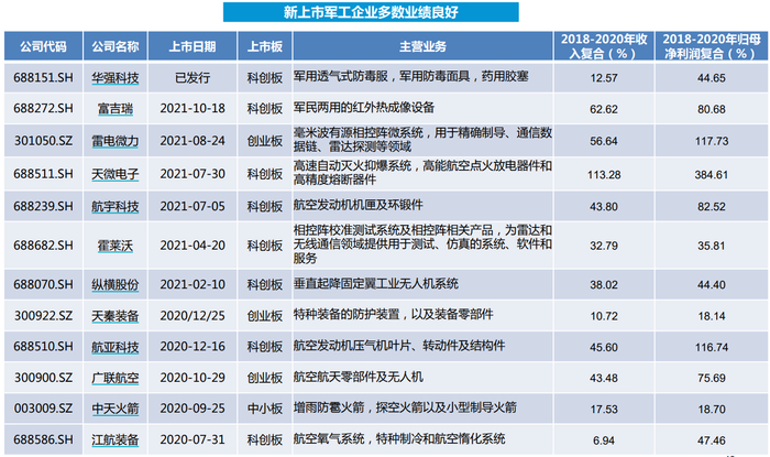 东吴证券认为,军工投资进入了黄金时代。持有同样观点的还有华泰证券,华泰证券指出,十四五行业景气度持续向上,军工投资迎来黄金时代。建议关注导弹、军机、发动机、无人机、国产大飞机、空天卫星互联网六大高景气产业链。重点关注信息化、主机厂、新材料、发动机、改革方向等投资主线,个股建议关注:紫光国微、新雷能、振华科技、中航高科、航发动力、中直股份、中航沈飞、中航光电、航天电器。