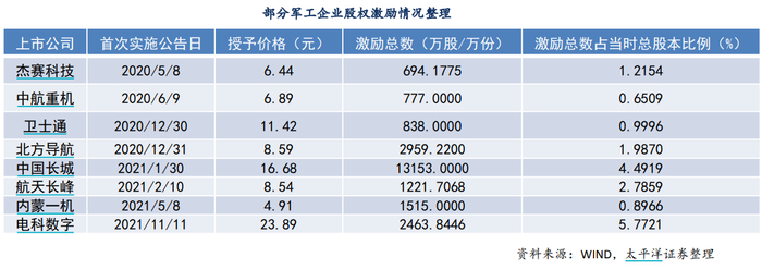 股权激励释放经营活力。2020年5月,国资委印发了《中央企业控股上市公司实施股权激励工作指引》,为中央企业控股上市公司股权激励提供系统全面的政策辅导和实践指南。近年来,军工央企上市公司发布并实施股权激励的数量明显增多,2022年作为《国企改革三年行动方案(2020-2022年)》的最后一年,相关改革措施有望加速推进。军工企业实施股权激励有助于充分调动管理层和骨干员工的积极性,释放经营活力,改善公司治理,提升盈利能力。