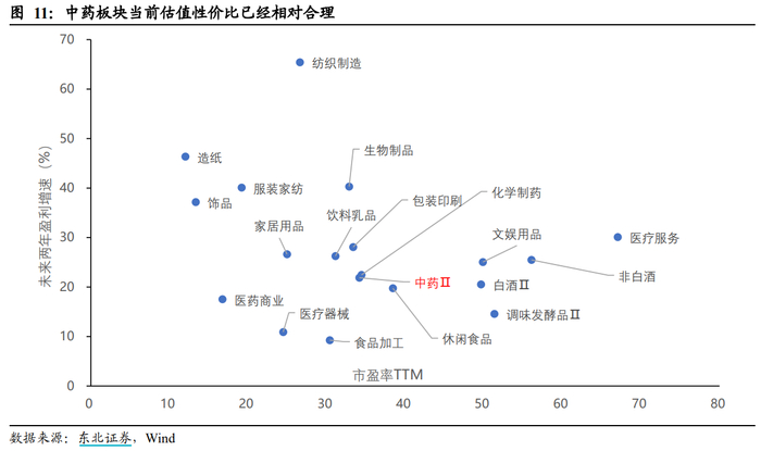 3)估值性价比:经过调整后当前中药板块估值分位数仅位于30%左右,机构持仓也处于相对低配,盈利较其他医药子行业已经具备一定优势,估值性价比较之前相对合理。
