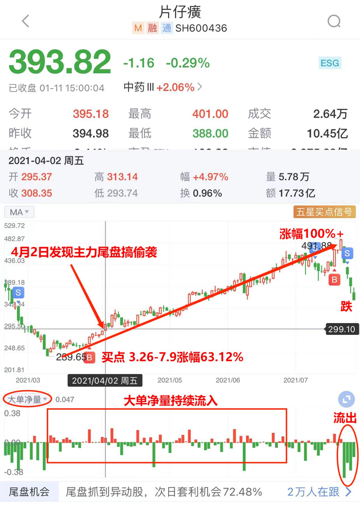 3月26日和7月9日,B/S点也发出了提示信号,片仔癀从264.86元涨至432.05,区间涨幅为63.12%。