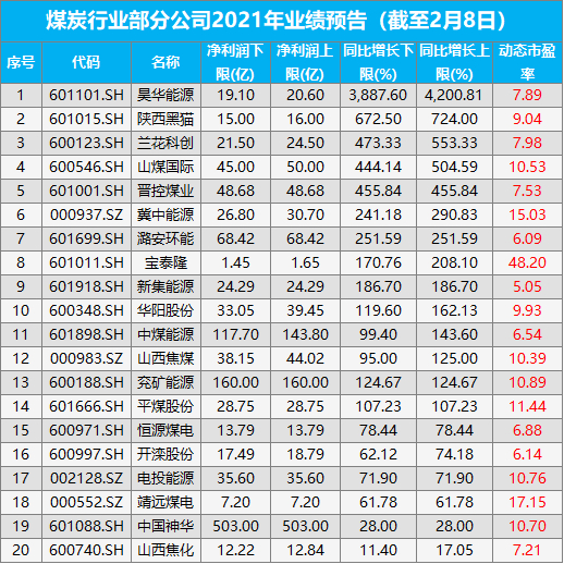 在供给减少,需求增加的情况,叠加煤炭价格的整体上涨。因此,煤炭行业的上市公司迎来了业绩的大幅增长。