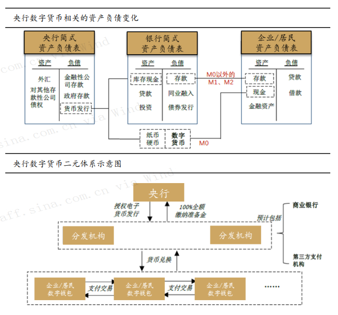 从运行体系来看,数字货币是“央行—商行”的二元运行体系。根据穆长春所长公开发言:DCEP采取的是双层运营体系,即:央行先把数字货币兑换给银行及其他分发机构,再由分发机构兑换给公众。分发机构来看,商业银行是当仁不让的主体,除此以外包括阿里、腾讯、银联等商业机构也都在其中。