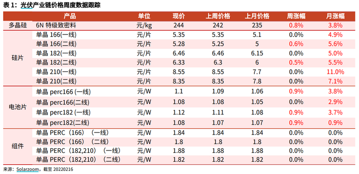此次硅片价格的上涨主要在传导上游硅料的涨价,而硅料价格上涨反映的是终端需求的环比改善,主要得益于海外市场需求和国内分布式项目支撑的边际需求改善。