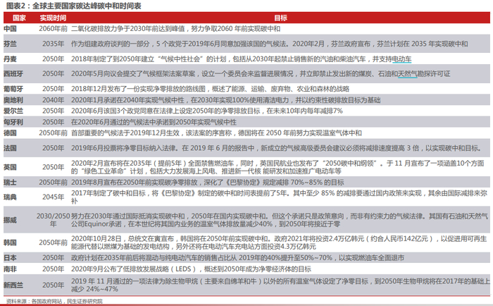 中国在气候雄心峰会宣布,至2030年非化石能源占一次能源消费比重达25%左右;欧盟成员国达成共识,2030年较1990年碳减排目标由40%提升至55%;美国拜登竞选总统胜出,计划重回《巴黎协定》。
