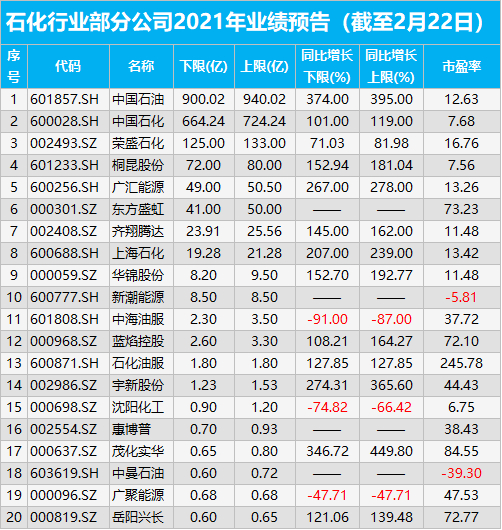 原油价格的上涨自然也会带动油气上市公司利润的上涨,这也是为什么近期A股板块的油气公司遭到了市场资金的追捧。典型的就是中国石油,1月12日,中国石油公告,预计2021年实现归属于本公司股东的净利润与上年同期相比,将增加710亿元到750亿元,增长374%到395%;与2019年同期相比,将增加443亿元到483亿元,增长97%到106%,两年平均增长40%到43%,创近七年同期最好水平。2021年,国际原油价格持续震荡上行,国内宏观经济稳定复苏,油气产品需求同比增加。公司油气两条产业链安全平稳运行,主要油气产品销售实现量效齐增。