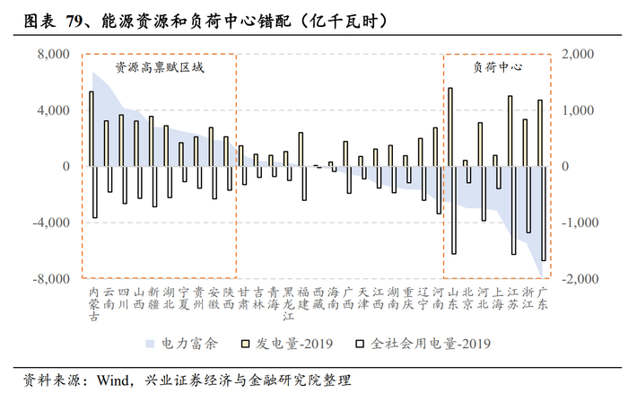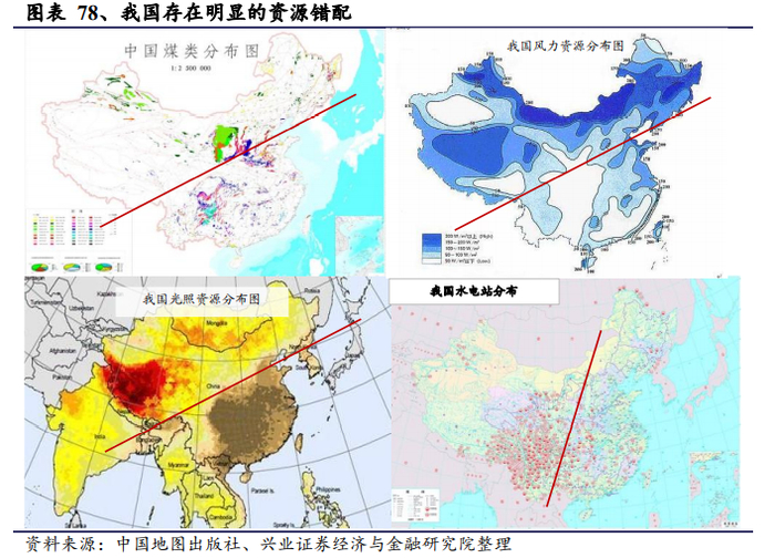 能源资源和负荷中心的错配非常明显,内蒙云南四川等地是高资源禀赋区域,广东浙江江苏上海是负荷中心。