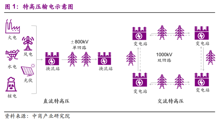 特高压是指电压等级在交流1000千伏及以上和直流±800千伏及以上的输电技术,具有输送距离远、容量大、损耗低和效率高等技术优势。我国在特高压技术上拥有完全的自主知识产权,且完全具备大规模建设特高压电网的条件。